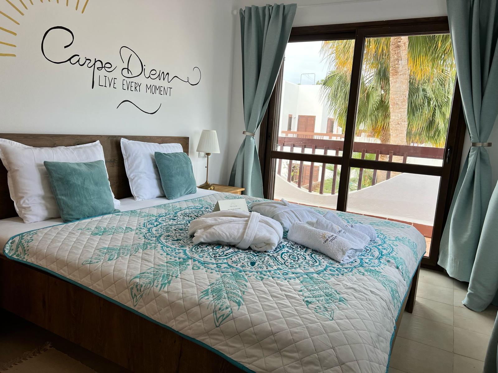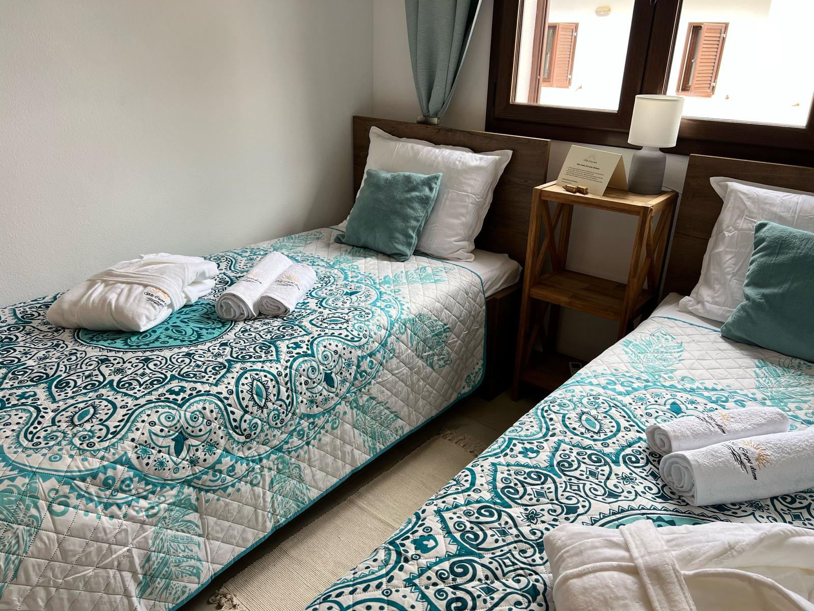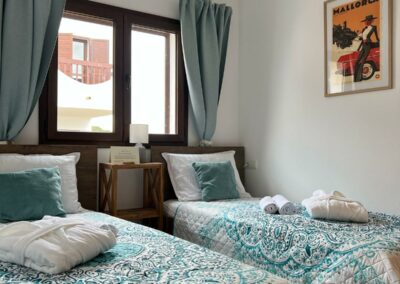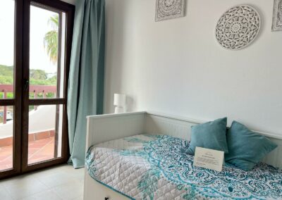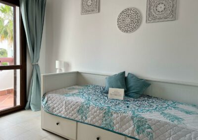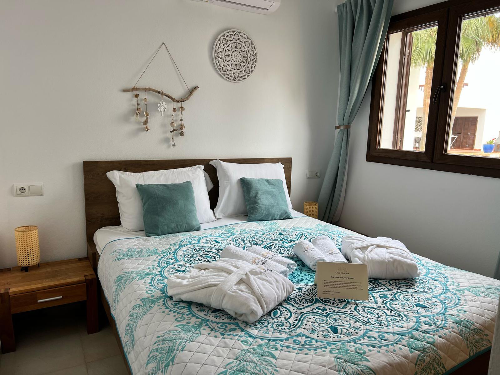 V přízemí jsou dvě ložnice ideální pro rodinu – jedna s manželskou postelí a druhá se dvěma lůžky. V patře najdete prostornou ložnici s výhledem na palmy, další ložnici s manželskou postelí a pokoj s rozkládací pohovkou pro dva.